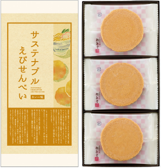 麺の生成過程でできる「うどんの端材」は、お客様に提供することができません。当社でも廃棄せざるを得ない状況でしたが、名古屋の老舗菓子メーカー「桂新堂」様との協業により解消。桂新堂から出る「甘えびの頭」と、若鯱家から出る「うどんの端材」を組み合わせた「サステナブルえびせんべい」を開発し、フードロスの削減につなげながら新たな付加価値を生むビジネスモデルを作り出しました。この取り組みにより、生麺のロスはゼロに。サステナブルな商品開発は今後も継続していきます。