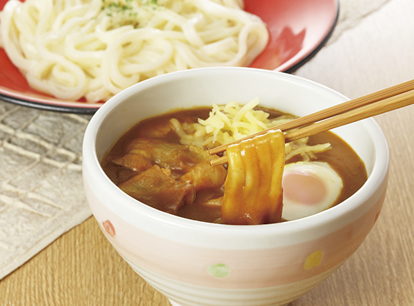 八丁味噌を使った”なごやめし”味噌煮込うどんに、名物カレーうどんの秘伝のカレー粉を丁寧に溶かし入れました。